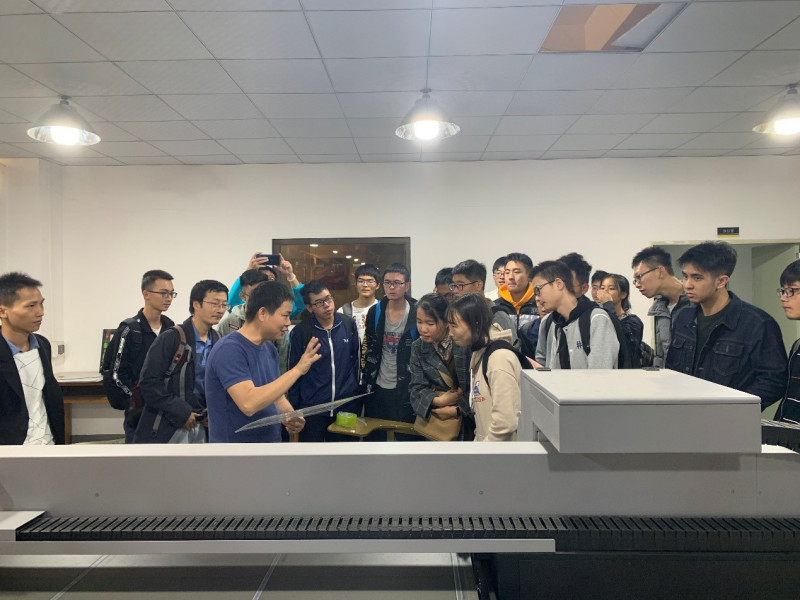 下午同学们继续启程去往东莞天科光电科技有限公司,受到了赵永添董事长的热情招待。赵总介绍了目前公司的产品为游戏机面板,主要为美国游戏机产业提供产品。先是带领我们了参观了他们平版印刷的车间,向我们讲解了印刷机器的工作原理,并介绍了目前的印刷的游戏图案有耐久性好,不掉漆,成本低的特点。这也是东莞天科光电科技有限公司产品能打败其它供应商,走出国门的重要因素。期间,赵总还热情地为我们展示了机器上最重要的喷头部件,介绍了它与普通印刷喷头之间的区别,并勉励同学们在中大好好学习先进科学技术,争取将来能打破国外企业关键技术的封锁。