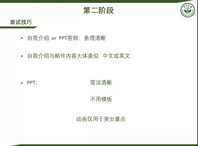 第二阶段:准备面试及面试。同时不能忽略ppt的准备。