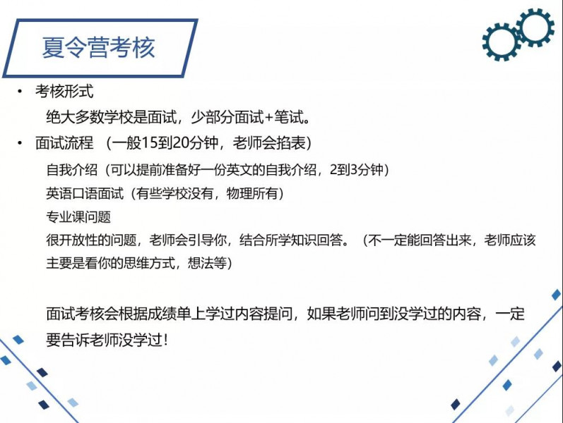 关于夏令营考核的相关事项,他也分享给我们全面的总结: