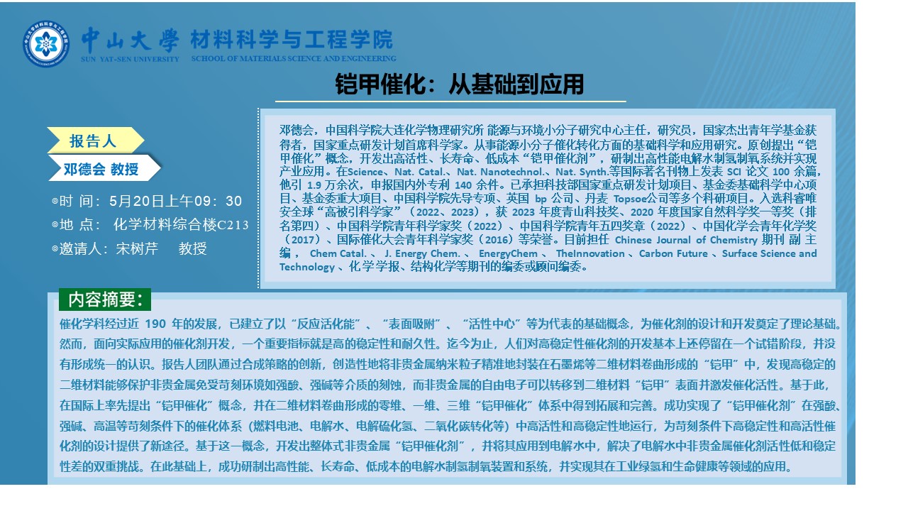 稿件来源:邓德会 教授 发布人:董秋娉 编辑:化学材料综合楼C213