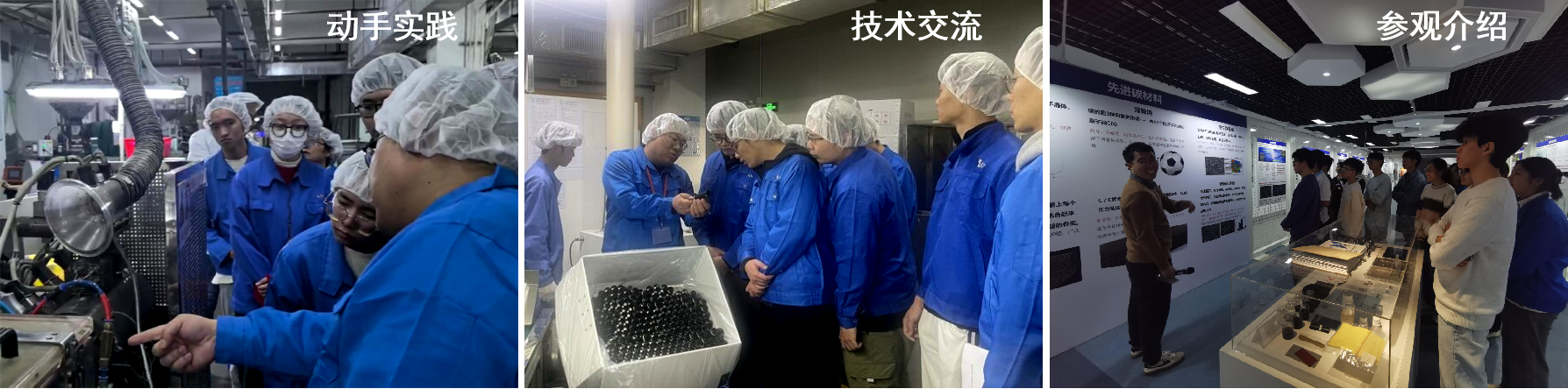 在深圳市通产丽星股份有限公司,通过参观绿色功能包装材料展厅及参加“一站式包装创新解决方案”包装工程技术专题讲座,学生充分了解了高分子包装行业发展态势以及存在的工程技术难题;同时,通过再回收循环产业车间的生产实景的亲身体验,同学们对高分子材料行业绿色生产的产业现状和发展趋势有了更为清晰的认识。而在国家863中心实验室和高分子加工成型车间,同学们围绕设备运行、工艺实现以及产品质控等企业生产和管理的关键环节,与资深工程师门进行深入互动,亲身参与到企业“大生产”实践场景中,与学校课堂学习形成互补。