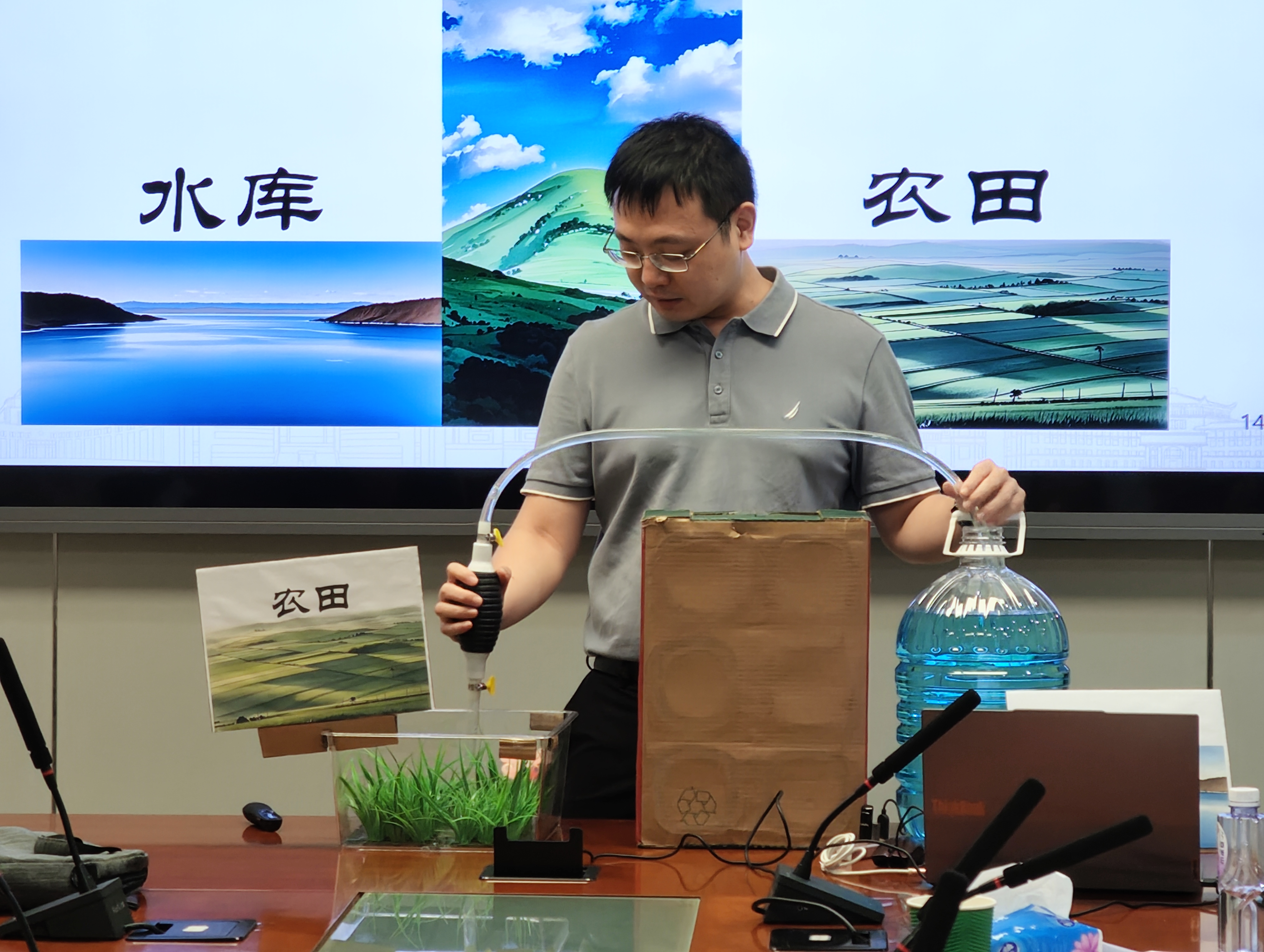竞赛由我院分管本科教学工作副院长宋树芹教授主持,并邀请环境科学与工程学院副院长王诗忠教授、化工工程与技术学院副院长孟国哲教授、我院历届教学督导成员担任评委。共有4位专任教师参加了课程教学赛道的角逐,青年教师张鹏、秦霓、蒋旭洲和刘书乐依次为评委们呈现了精彩的现场教学演示;此外,杨亚斌老师参加了教学创新赛道,结合教学目标和学生学情,运用新媒体、AI赋能等手段,对传统教学方法进行改革和创新。