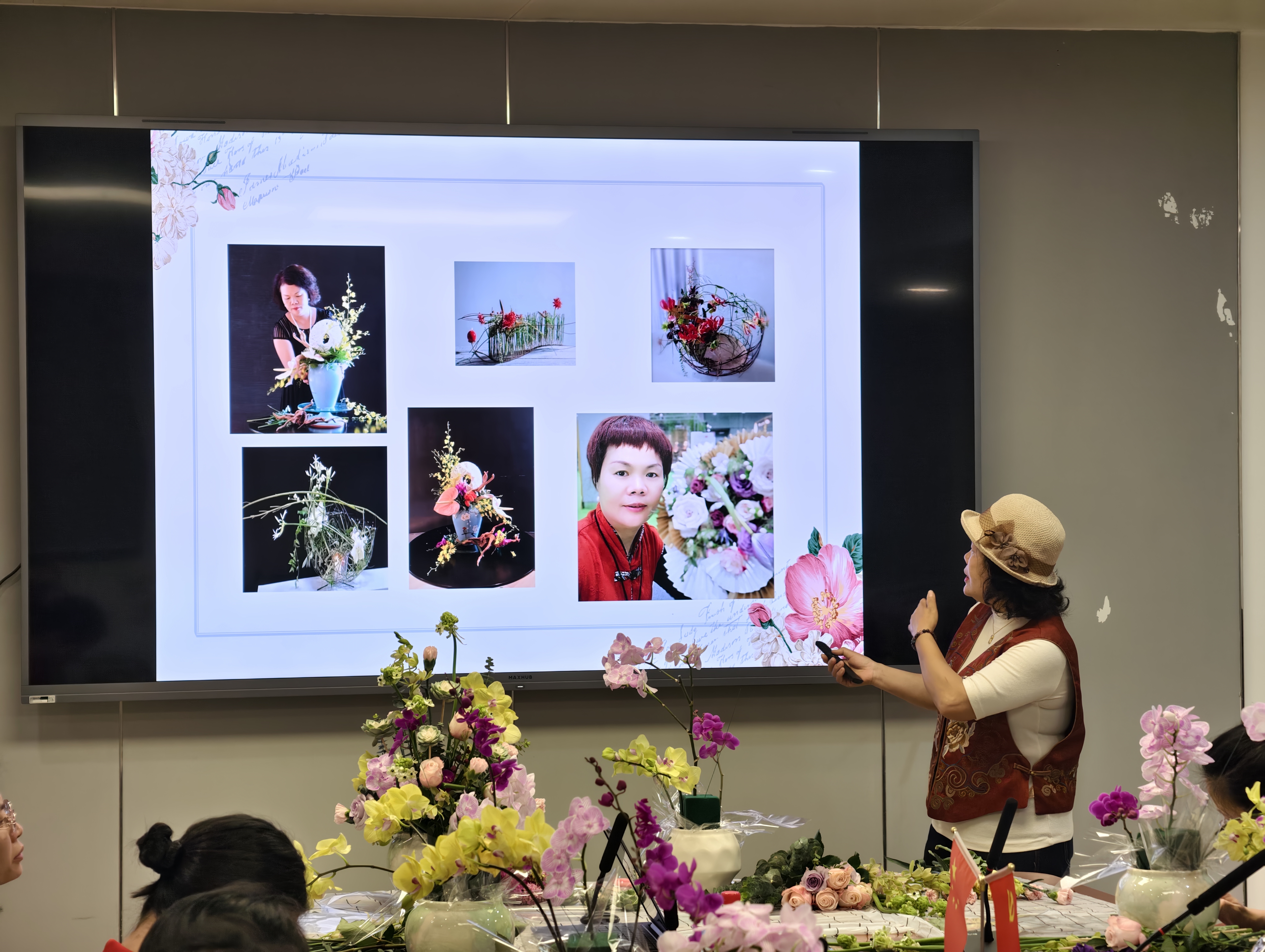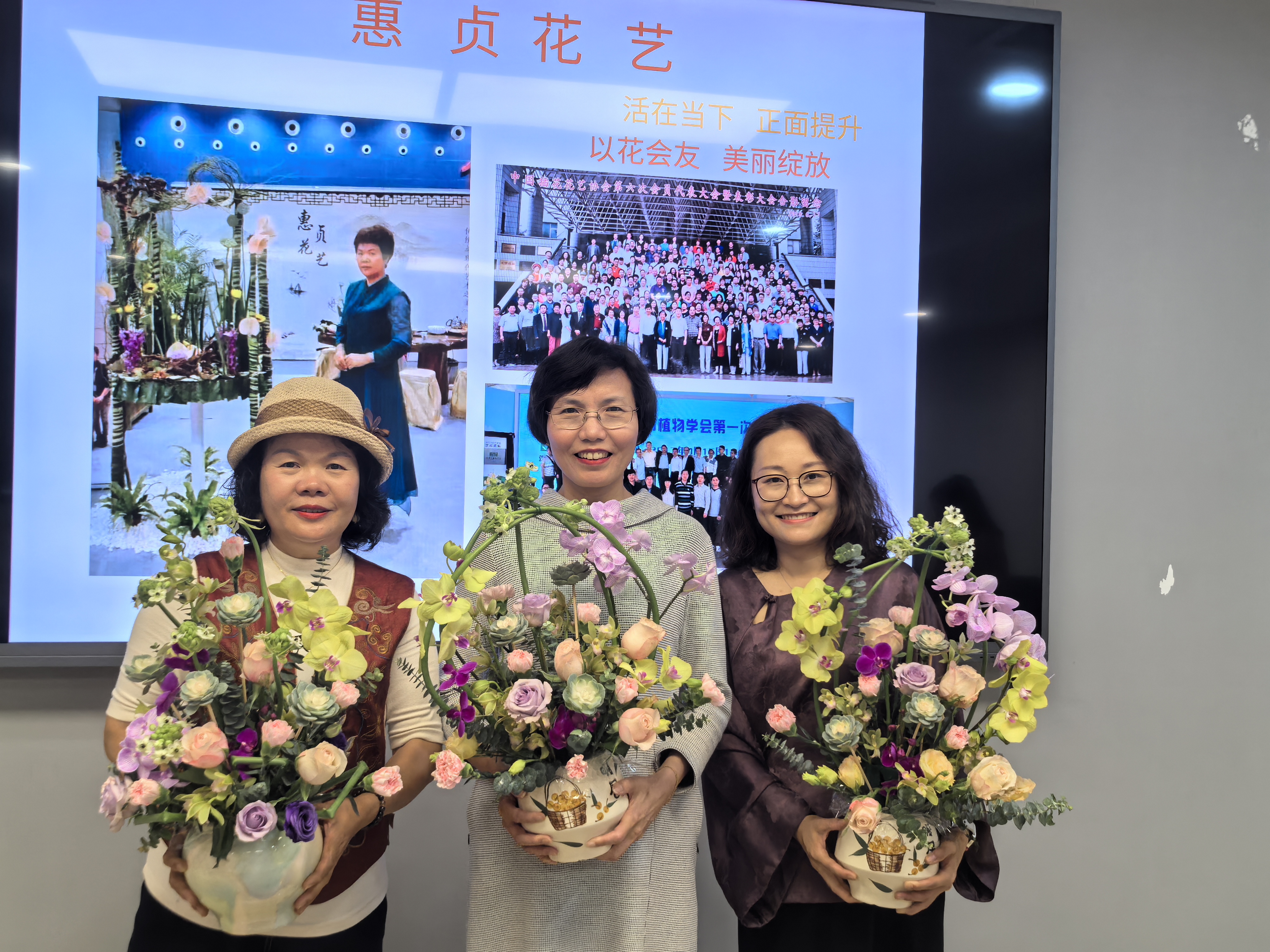 “平时忙着上课,很少有机会静下心来感受花艺之美。”一位女教师一边调整花枝角度,一边笑着说,“这次活动不仅让我学到插花技巧,更在忙碌中找到了放松的方式,感受到学院大家庭的温暖。”活动现场,大家相互交流、彼此互助,分享工作中的经验与生活里的感悟,欢声笑语与淡淡花香交织,营造出温馨和谐的氛围。活动最后,教职工们手持作品合影留念,定格下“花与人共美”的动人瞬间