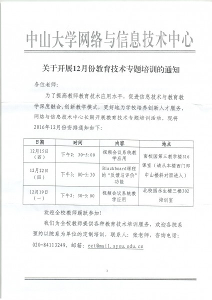 转发304永利集团网络与信息技术中心关于开展12月份教育技术专题培训的通知