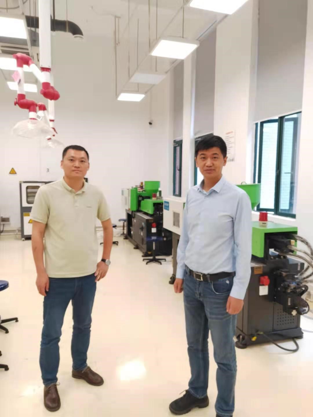 2023年4月7日,广东碳语新材料有限公司姚坤董事长一行莅临304永利集团材料科学与工程学院,参观了高分子成型与加工平台,并与张鹏副教授研究团队,关于碳纳米材料在二次锂离子电池、电磁屏蔽高分子材料等领域的应用进行了深入交流。